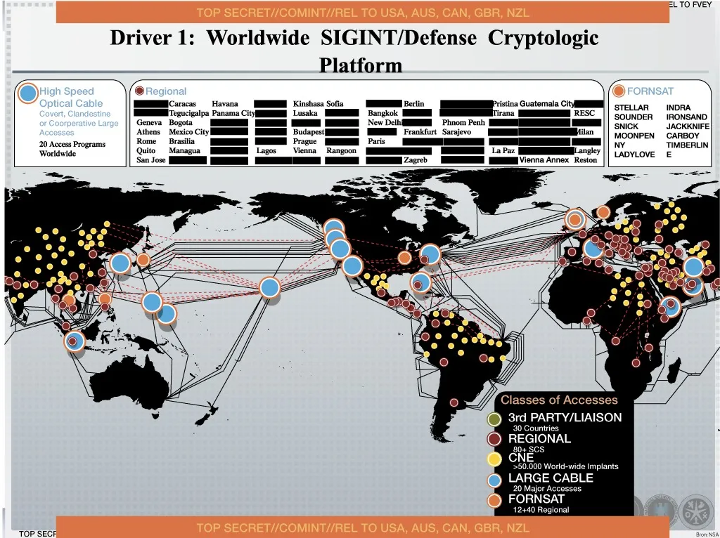 Mapa de explotación de la red informática a partir de las filtraciones de la NSA – enviado por Pavel Gurvich a Ehud Barak, 25 de noviembre de 2013.